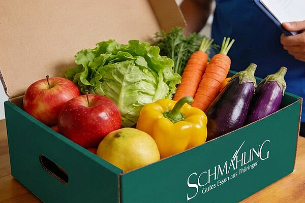Wir liefern einmal im Monat eine bunt gefüllte Kiste mit frischem Obst und Gemüse an Ihre Einrichtung.